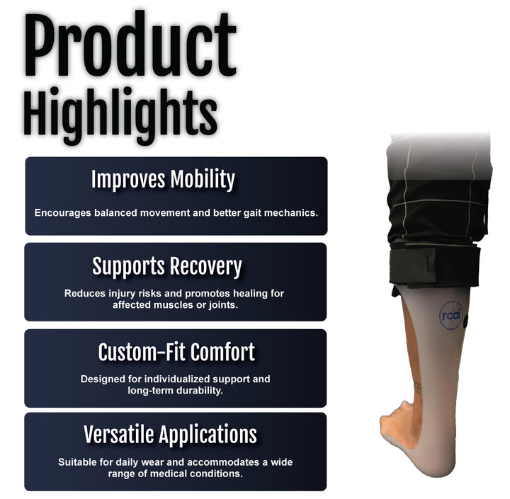 Take confident strides toward improved mobility and comfort with the RCAI Rigid Ankle Foot Orthosis (AFO). Designed for individuals facing lower limb challenges, this innovative orthotic device provides unparalleled ankle support, joint stabilization, and biomechanical alignment for a natural, steady gait. Whether you're recovering from an injury, managing neurological conditions, or living with chronic ankle instability, the RCAI Semi-Rigid AFO offers dependable, all-day wear for rehabilitation and beyond.