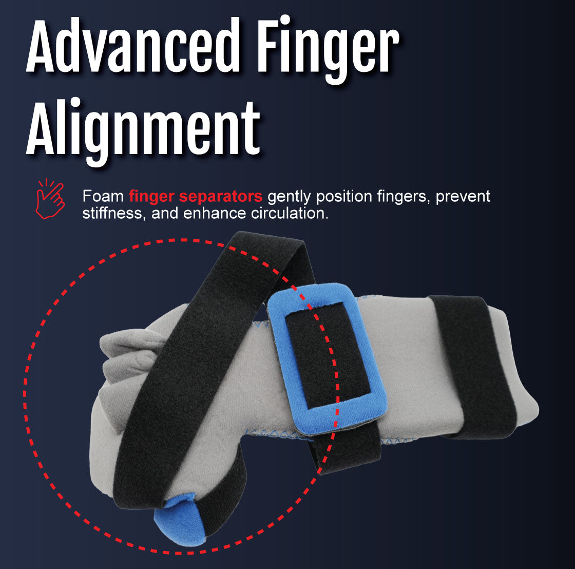 Advanced Finger Alignment: Foam finger separators gently position fingers, prevent stiffness, and enhance circulation.