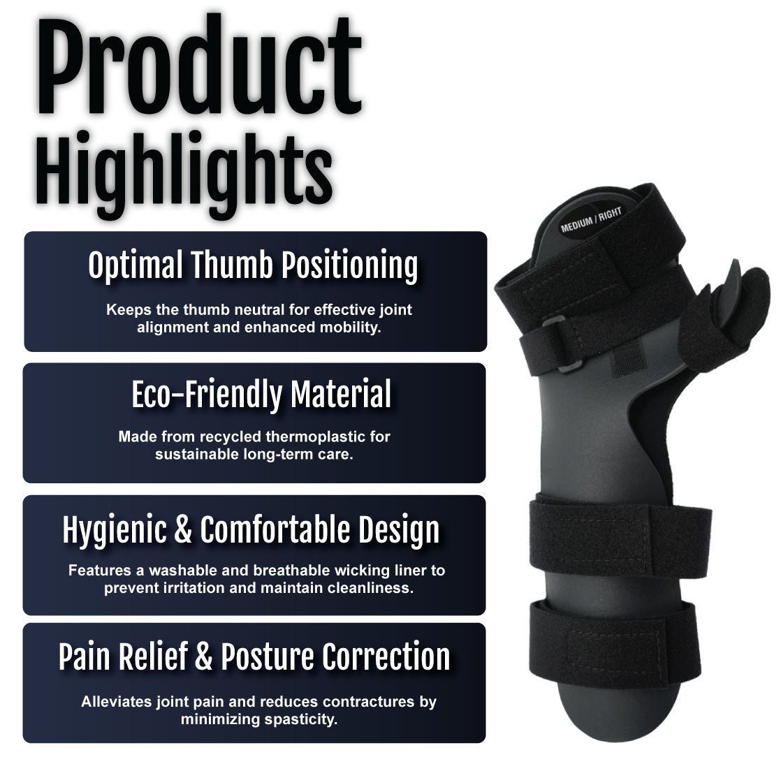 Neurological Impairments: Stabilizes the hand and thumb to address contractures and muscle weakness.